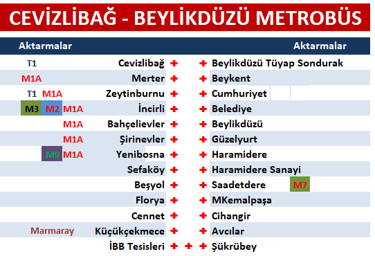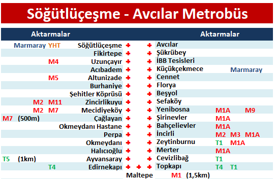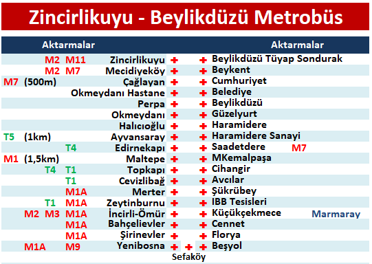 Zincirlikuyu – Avcılar Metrobüs Durakları
