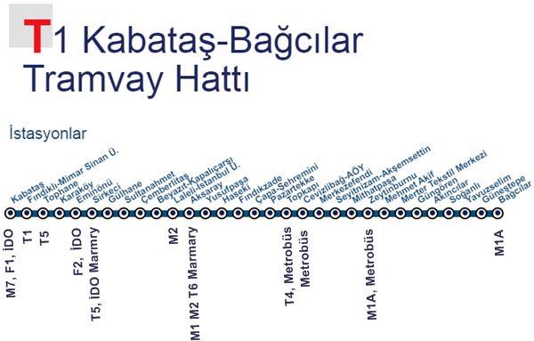 - T4 Topkapı Tramvayından yalnız Topkapı Durağı’ndan T1 Bağcılar – Kabataş Tramvayı’na aktarma olur.